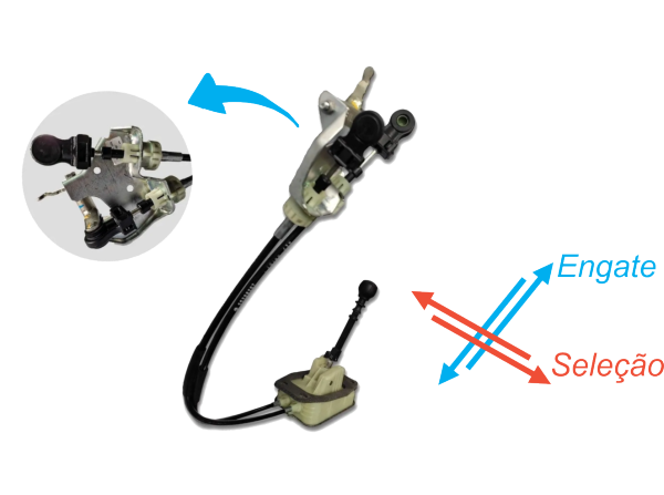 CABO DE SELEÇÃO: tem a função de escolher as marchas no veículo e o movimento de puxar e empurrar que eles realizam é significativamente menor do que o do cabo de engate e o seu acionamento é por um movimento lateral no câmbio. Transmite o movimento da alavanca de câmbio para o garfo de câmbio correto, direcionando a seleção da marcha.